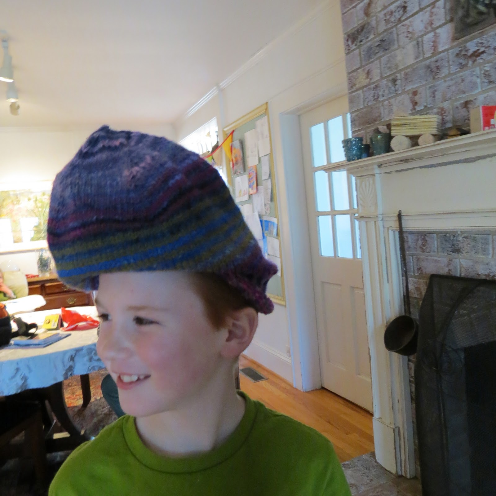 this hat, her most recent knit!)